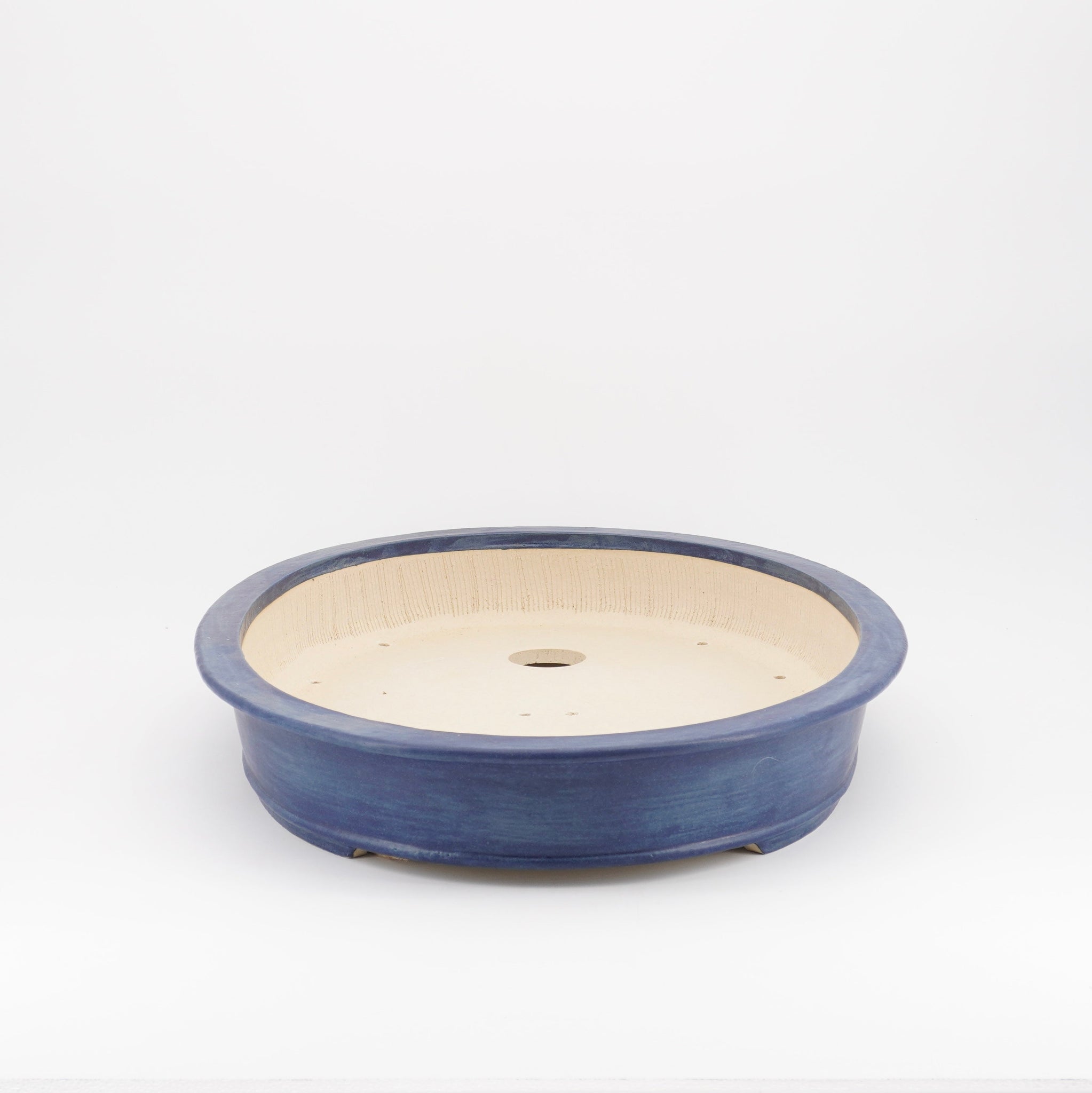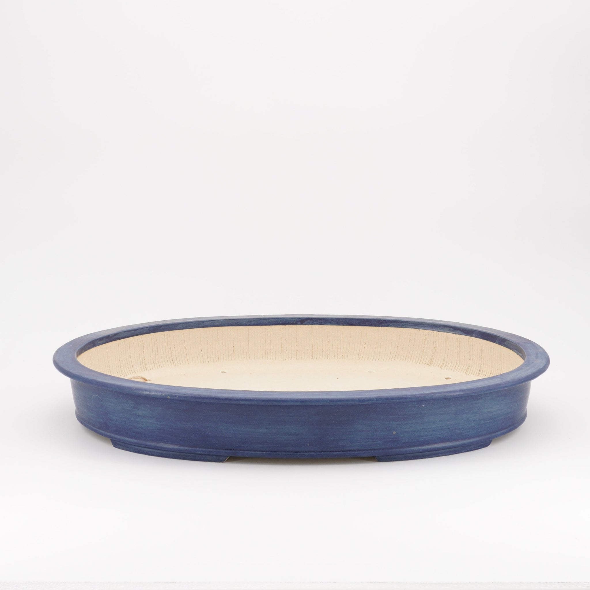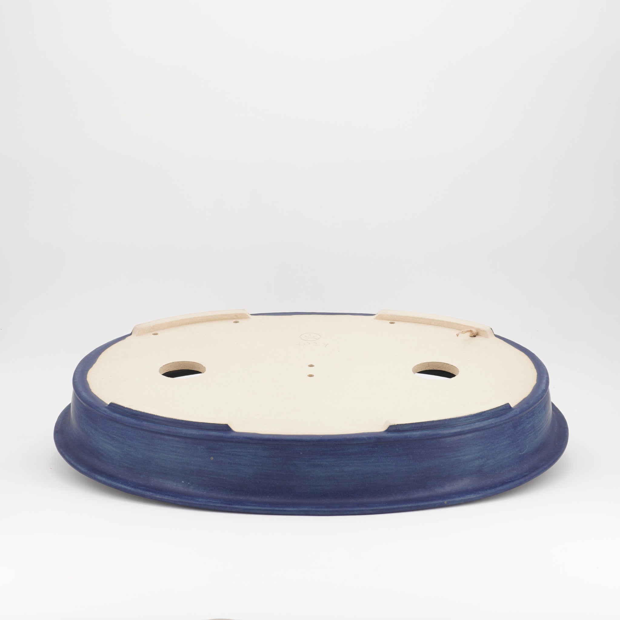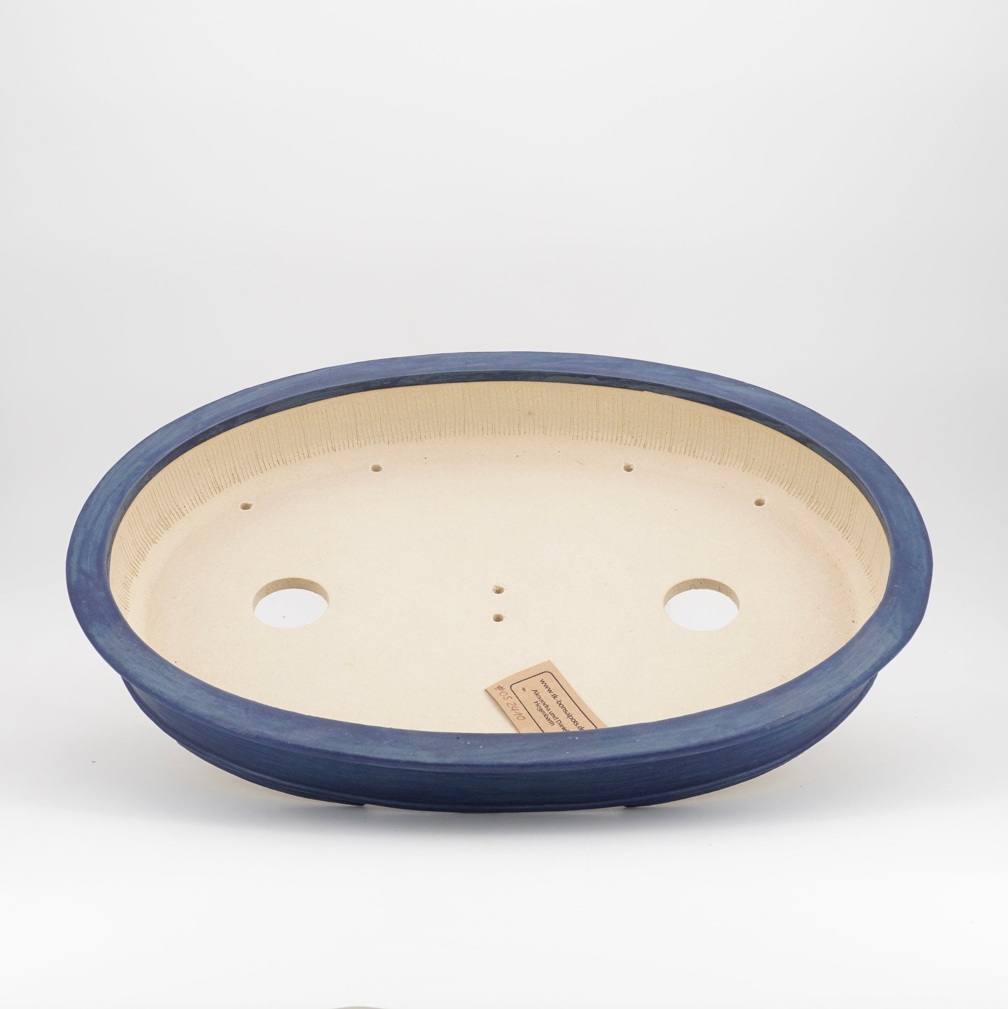 Sehr große ovale Bonsaischale mit toller blauer Glasur, breiter Oberlippe.