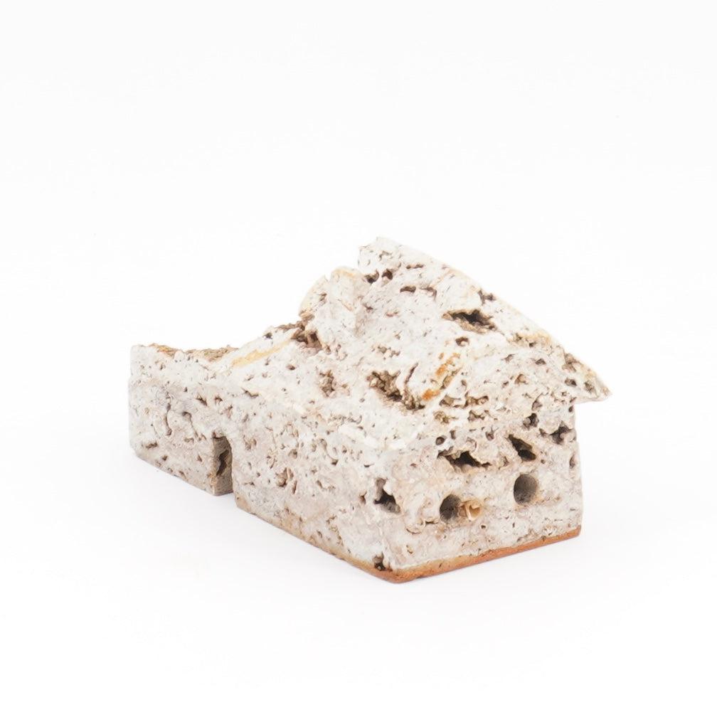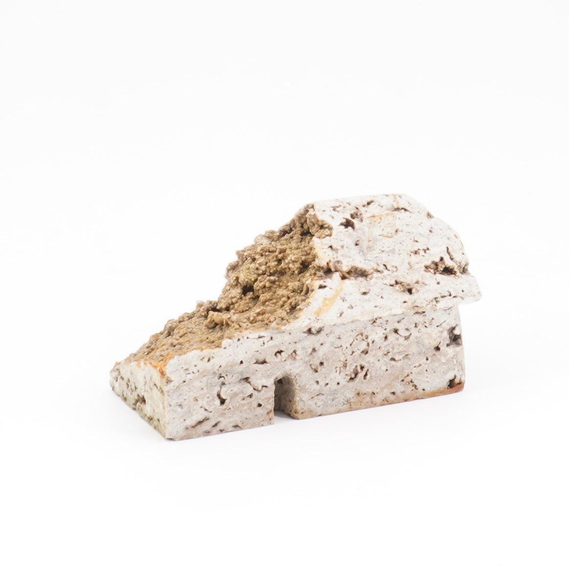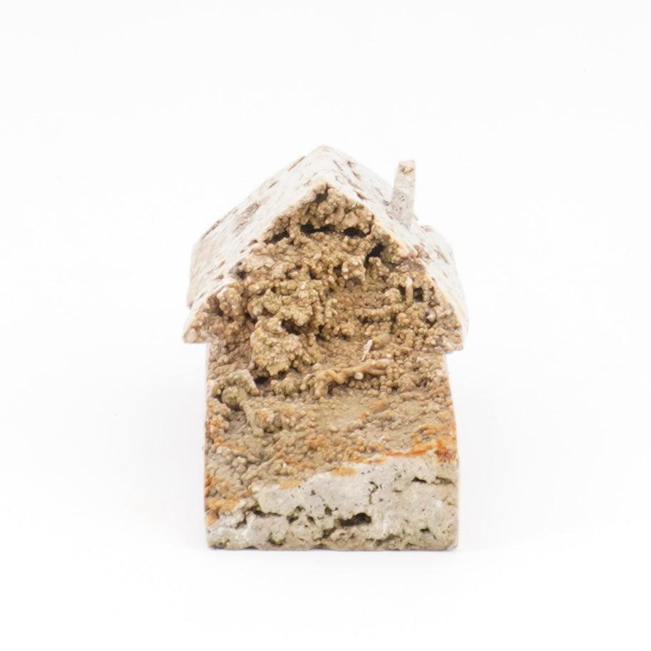 Handgefertigtes teilweise eingefallenes Deko-Bauernhaus aus Stein (Travertin) als kleiner Beisteller oder Deko-Artikel für den Bonsaigarten.
