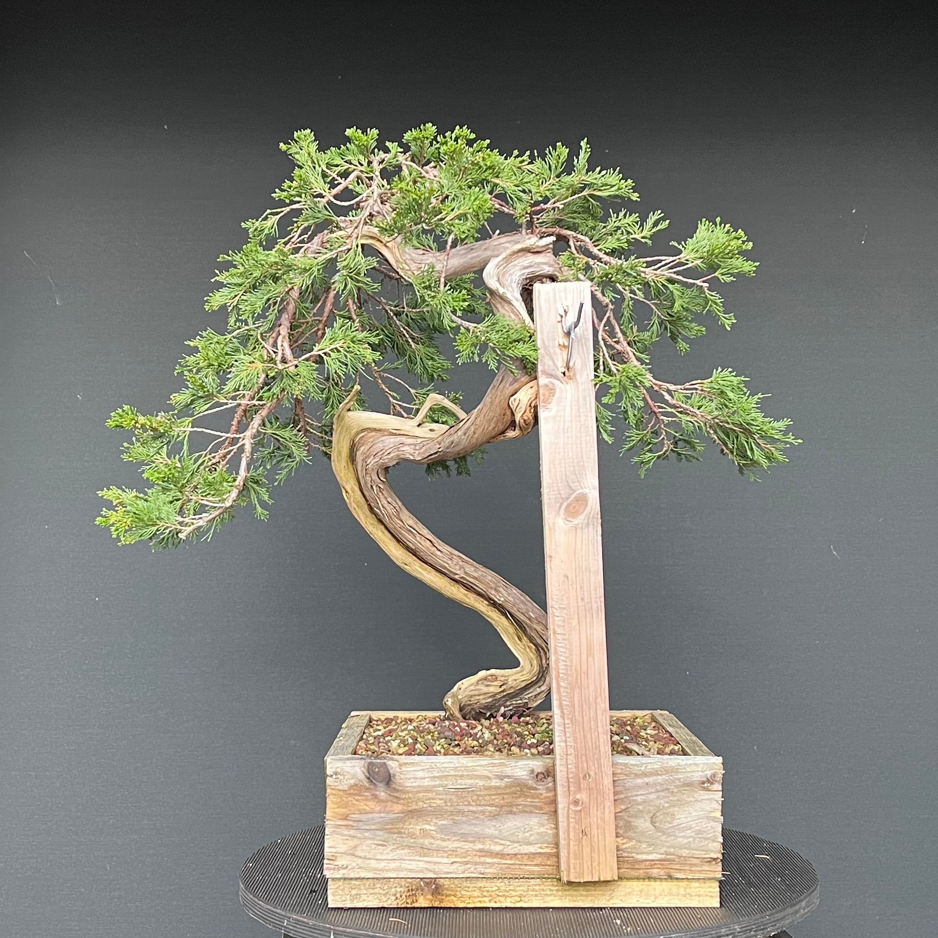 Sehr schöner männlicher Sabina-Wacholder aus Spanien. Der Yamadori hat eine elegante Bewegung und sehr schönes altes Totholz. Für eine Gestaltung bietet sich die Literatenform geradezu an!