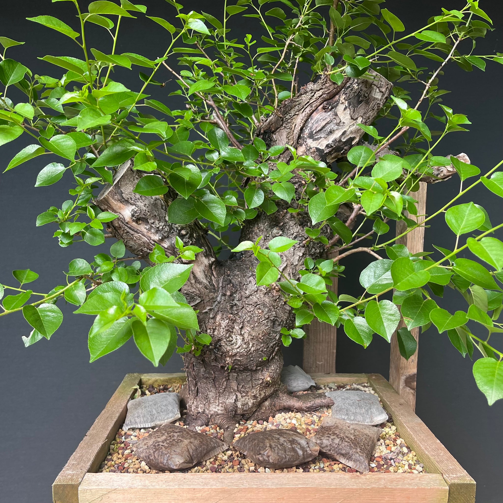 Der Rohling wurde Anfang 2024 umgetopft, der Wurzelballen ausgewaschen und in Substrat getopft. Der Baum ist vital und kann sofort gestaltet werden.