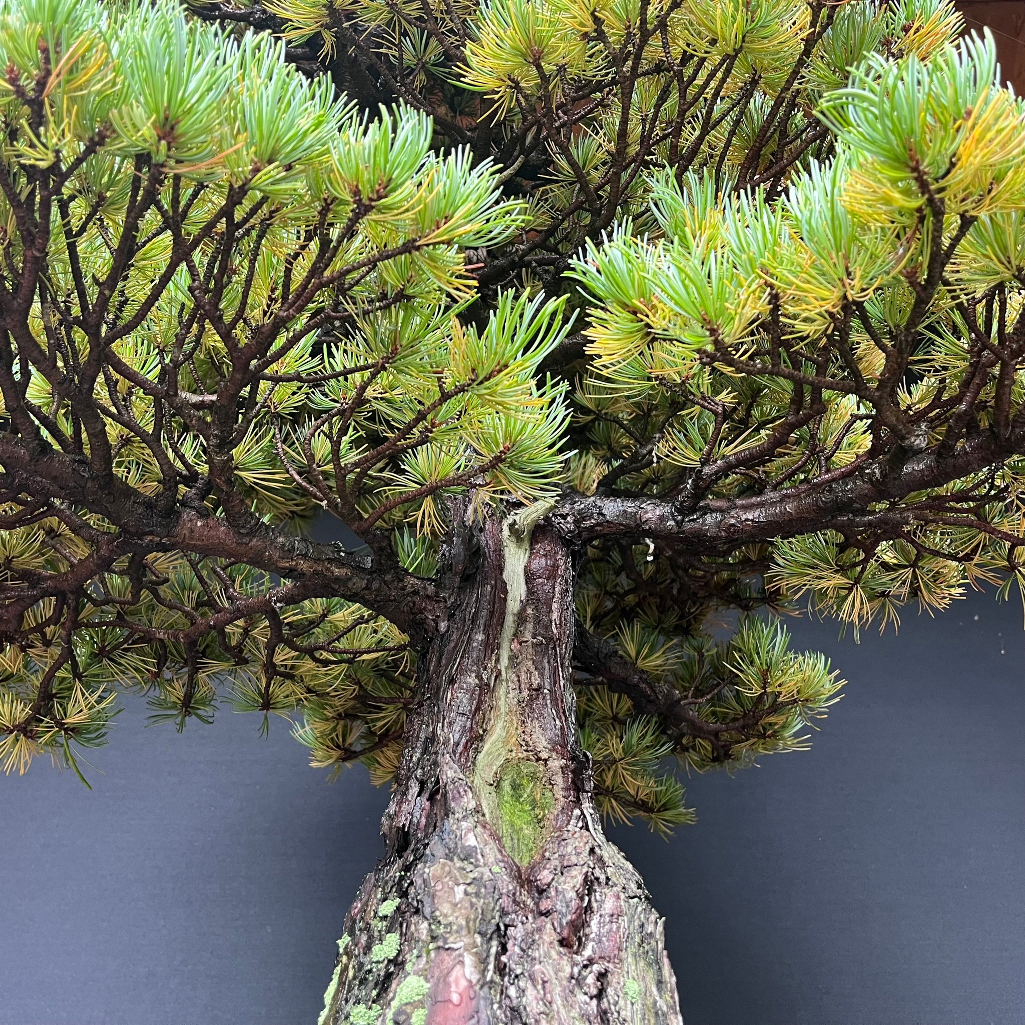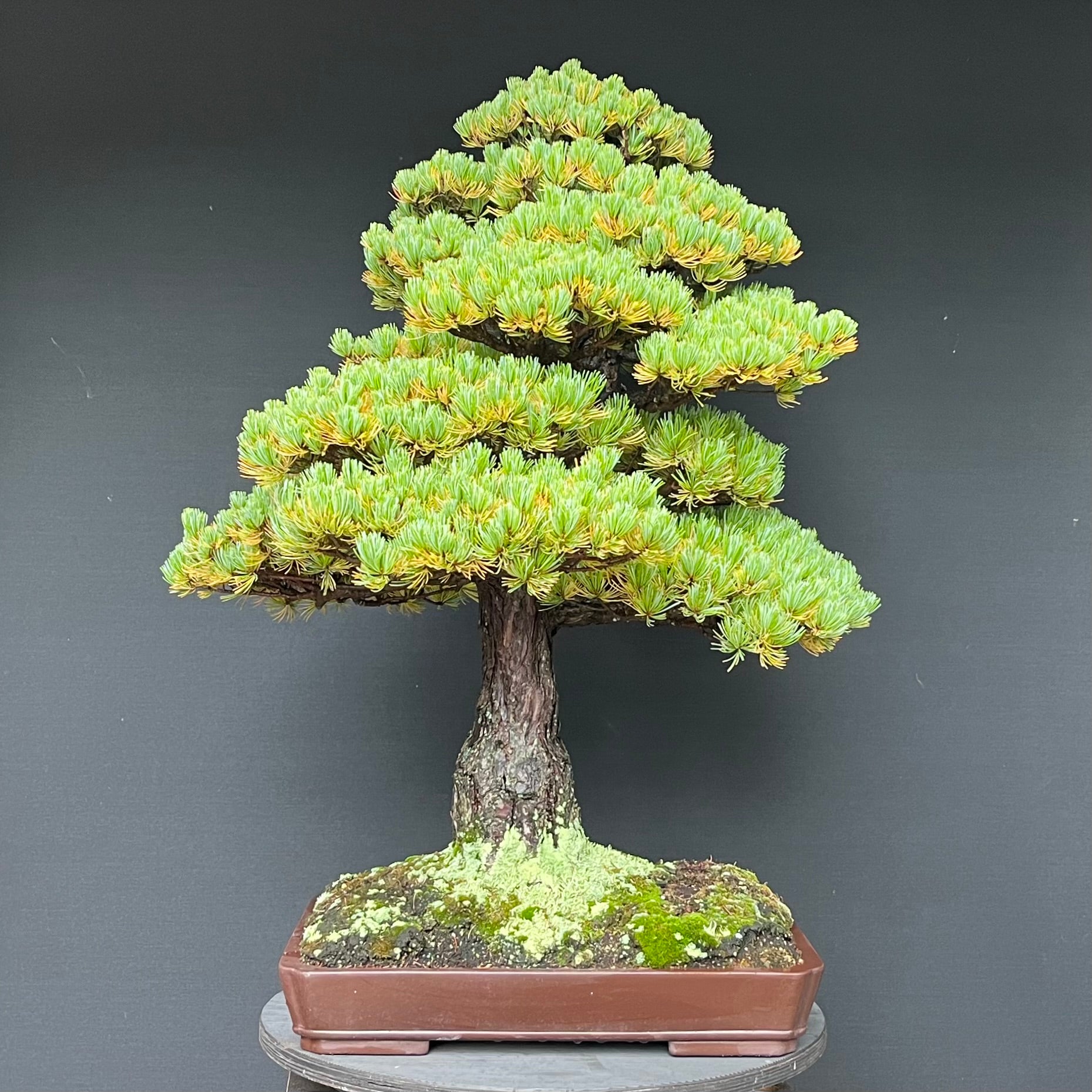 Dieser wunderschöne und stattliche Solitär einer Mädchenkiefer (Höhe knapp 1m) kommt aus einer Privatsammlung und wurde über viele Jahre gepflegt und verfeinert. Die Äste und Verzweigungen sind sehr gut entwickelt und aufgebaut. Der Baum hat wunderbare Astetagen.